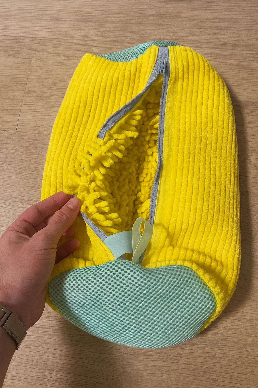 Washy è progettata con un interno ultra morbido che protegge le scarpe da urti e graffi, e con un rivestimento esterno in rete traspirante che evita danni al cestello della lavatrice.
